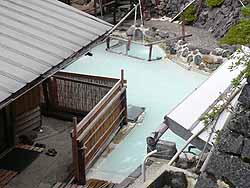 お湯が乳白色で透明度が少ないので女性の方でもそんなに心配しなくてもよいです。しかも女性には貸しタオルも用意してあり(女性の脱衣所脇にあるそうです)、それを着用して入ればばっちり。 |