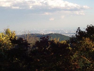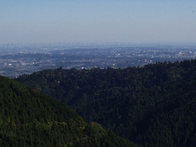 高尾山頂見晴台からの眺め。山の中だぜ〜ってカンジ。
