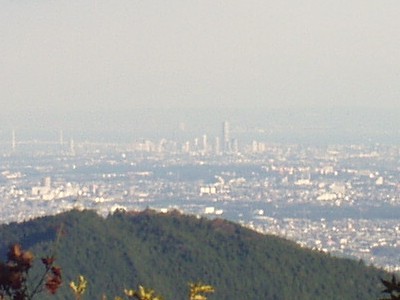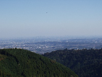 微かに見えるビル郡。真ん中が新宿。見えるかな?