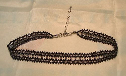 ↑ 穴水風チョーカー。黒と紫で作っています。