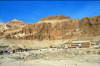 | ハトシェプスト女王葬祭殿 絶壁の反対側は「王家の谷」になります。 |