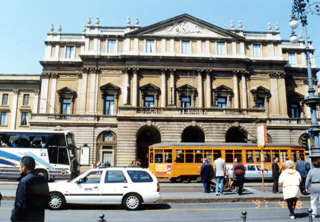 | ミラノ・スカラ座 世界のオペラの殿堂ですが、余りにシンプルな外観です。 |