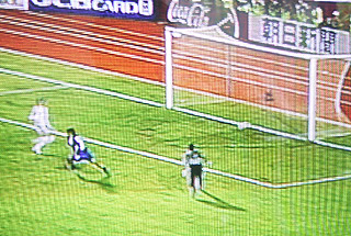 サッカーW杯アジア予選はハラハラドキドキの連続でしたが、北朝鮮戦に2−0で勝利して本大会進出を決めました。 何はともあれ、おめでとうございます。一時はジーコ監督の退陣問題も起きましたが、「勝てば官軍」です。 今やジーコ様々と持ち上げるマスコミの変り身の速さには、「おそれ入谷の鬼子母神」です。私も同様ですが! 写真は大黒選手が2点目をゲットしたシーンです。テレビ朝日及びTBSのTV画面からデジカメで撮ったものです。