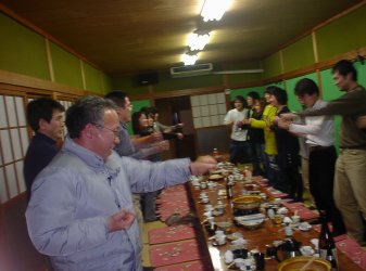 遠方から応援に掛けつけたOBの先輩方、会話も弾みます。