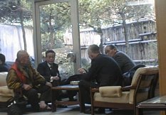 45周年式典に引き続き 澤田先輩の道場教え子さんが 遠路、福岡県直方より 空手太鼓の演武に駆けつけて くれました。 演武のリハーサルの後で 最後の打ち合わせを 行う澤田先輩 |