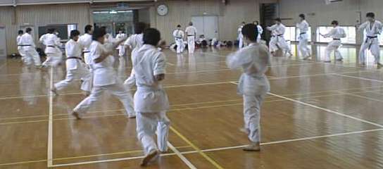 第2日目練習 昨夜、黒髪山はもの凄い豪雨に襲われ、雷の音も聞こえました。 雨の音で 夜中に目を覚ました学生も多かった様です。 2日目からは 昨夜、到着した長崎県の青雲高校の空手道部員3名 が参加。 指導陣には学生空手道連盟の宮原審判長も加わりました。 |
