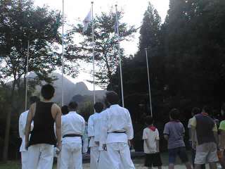 国歌を聴きながら 国旗をみんなで降ろします。