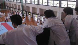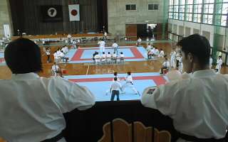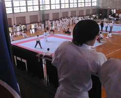 試合が終わって 部員達は他の試合を 優勝戦まで観戦しました。 結構、勉強になります。 ↓ 試合を観戦する部員。