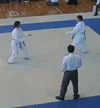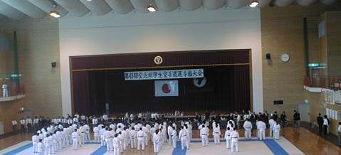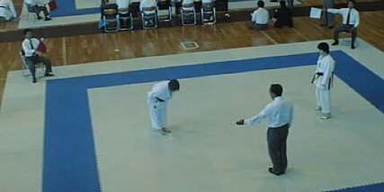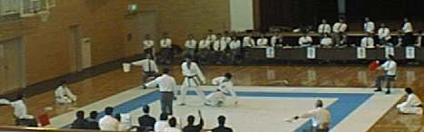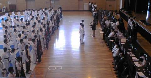 全国大会に出場する選手が選出 されました。 「この大会は世界大会に続いている。」 「空手に終着駅は無い。」 大会役員からの激励の言葉が飛びます。 |