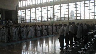 | 開会式 | 宮原監査役長の号令で A,B,C,Dの4コートで一斉に試合開始 |
