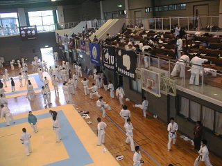 私はバスで 試合前30分に 会場に来たのですが 各大学の選手はウオーミングアップに余念がなく