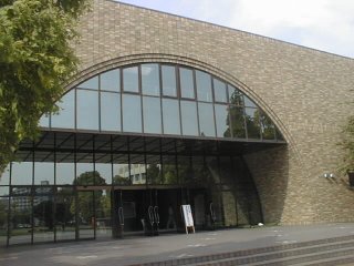 | 北九州大学正門 | 立派な校舎 | 会場の体育館 |
