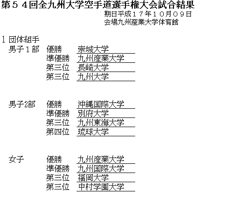 第54回 全九州大学空手道選手権大会