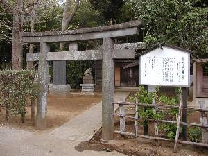 創建不詳。石造の明神鳥居は正徳3(1713)の建立、市内で最古、安山岩で地表より288cm、「天下大平正徳三癸己四月吉祥日」と刻まれ村内9名の芳名がある。